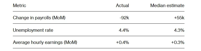 - 비농업 고용(Nonfarm Payrolls): -9만 2,000명